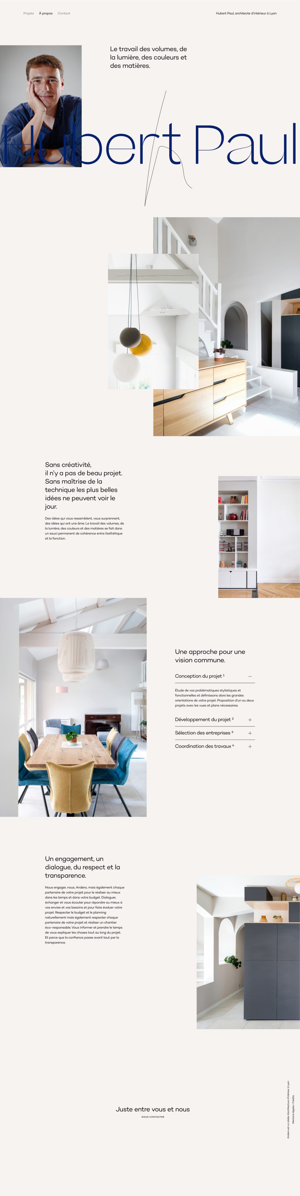 Hubert Paul, architecte d'intérieur à Lyon m'a confié le développement de son site internet. Résultat : un thème Wordpress spécifique, à son image.