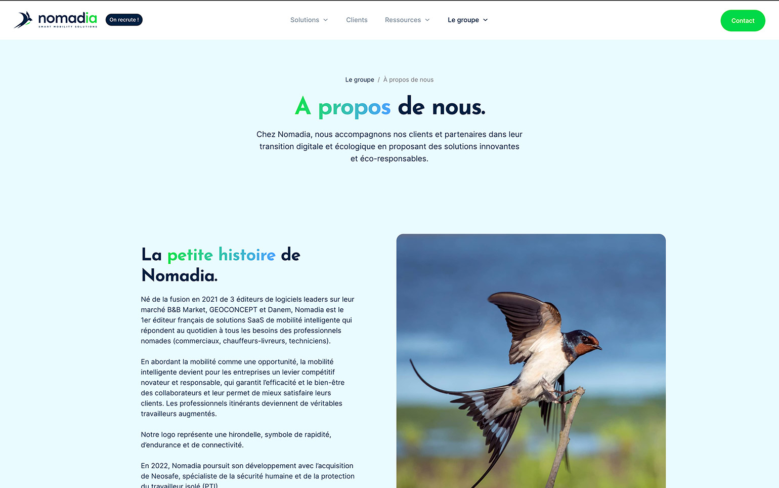 L'agence Zeecom m'a confié le développement du site internet du groupe Nomadia. Ce site internet Wordpress multilingue à fort contenu est entièrement administré par Wordpress.